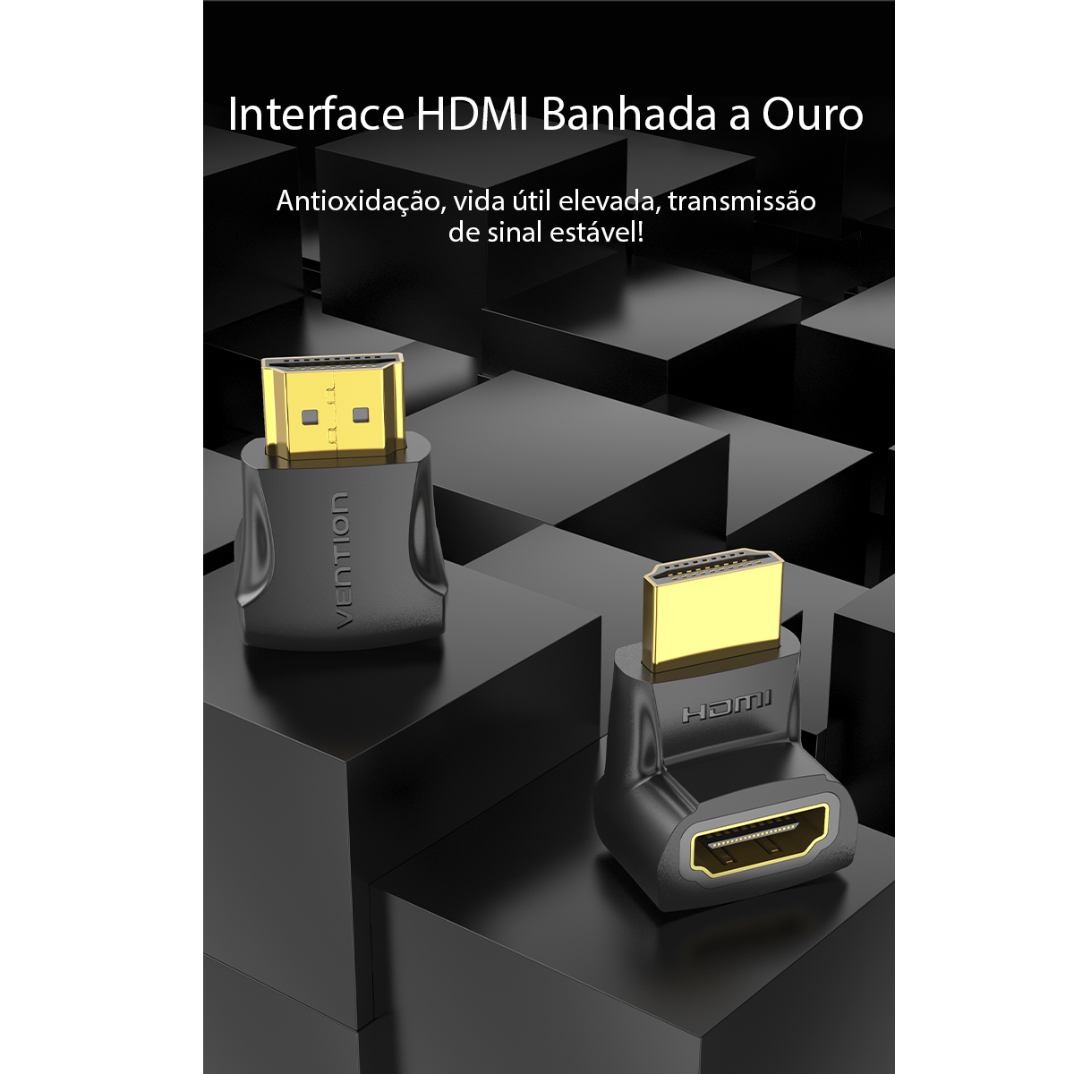 Adaptador HDMI 90º Graus em L Macho para Fêmea HDMI 2.0 4K 60Hz Bidirecional – Ideal para TV Perto da Parede – Vention